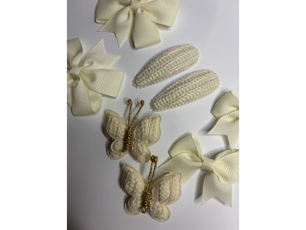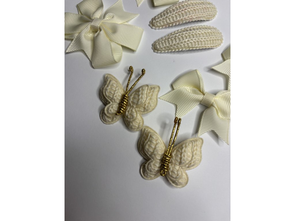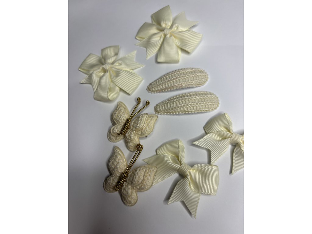 4 druhy sponiek do vlasov v krémovej farbe. Balenie obsahuje 8 rôznych sponiek.